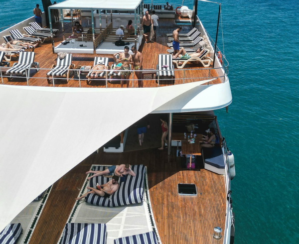 End your day with a lively DJ party on deck. Whether you want to dance the night away or chill on the sundeck.
